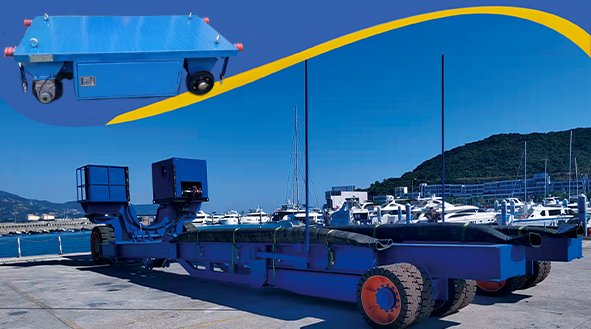 65T重型游艇拖車(chē)是由佛山南工車(chē)輛制造有限公司研發(fā)團(tuán)隊(duì)研發(fā)生產(chǎn)的一款重型游艇拖車(chē)。拖車(chē)可實(shí)現(xiàn)自行走、轉(zhuǎn)向、升降、水平調(diào)整以及寬度調(diào)節(jié)功能。通過(guò)自身行走舉升等功能,托舉起游艇在指定的區(qū)域內(nèi)轉(zhuǎn)運(yùn),以及在碼頭區(qū)域?qū)⒂瓮乃嫱现涟渡希驈陌渡蠈⒂瓮н\(yùn)送至水面。應(yīng)用場(chǎng)合:應(yīng)用于游艇俱樂(lè)部、旅游基地、游艇制造廠(chǎng)、船廠(chǎng)等。